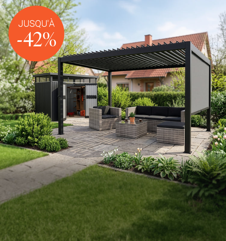 Transformez votre jardin, terrasse ou balcon en un havre de paix et de bien-être. Élégants ensembles de sièges, mobilier de jardin , bancs stylés, chaises longues confortables et balancelles vous offrent un confort optimal pour profiter pleinement de vos moments en extérieur. Des produits de protection solaire et d'intimité, tels que des auvents latéraux, des parasols déportés, des tonnelles et des toitures de terrasse, vous procurent une ombre rafraîchissante et vous protègent des rayons UV nocifs. Nos abris de jardin en métal et nos rangements pour poubelles vous permettent de ranger vos outils, équipements et bacs de jardin de manière ordonnée. Accessoires de piscine et barbecues à gaz complètent la vaste gamme d'articles de jardinage proposée par la boutique en ligne Juskys.
