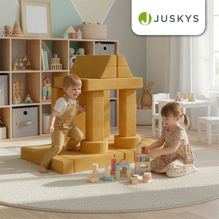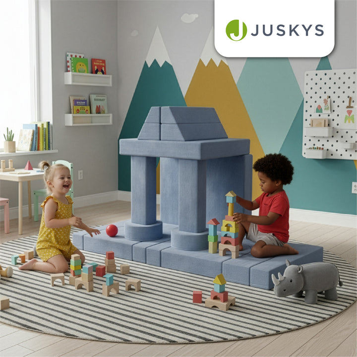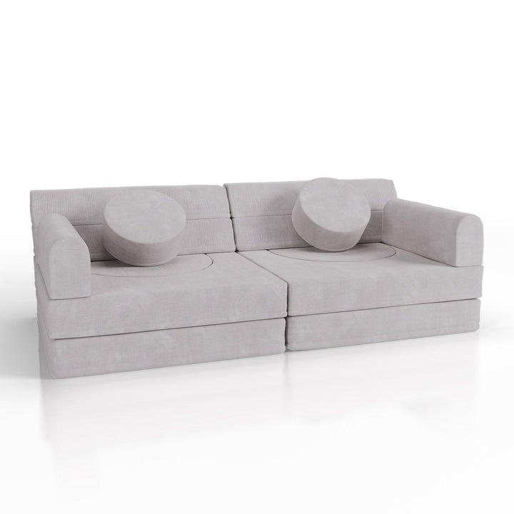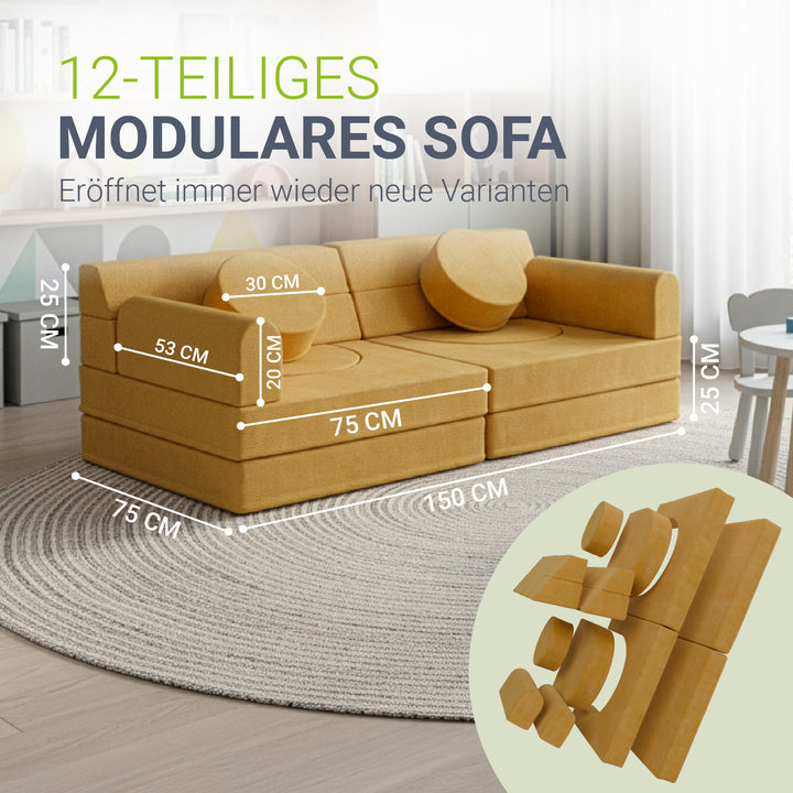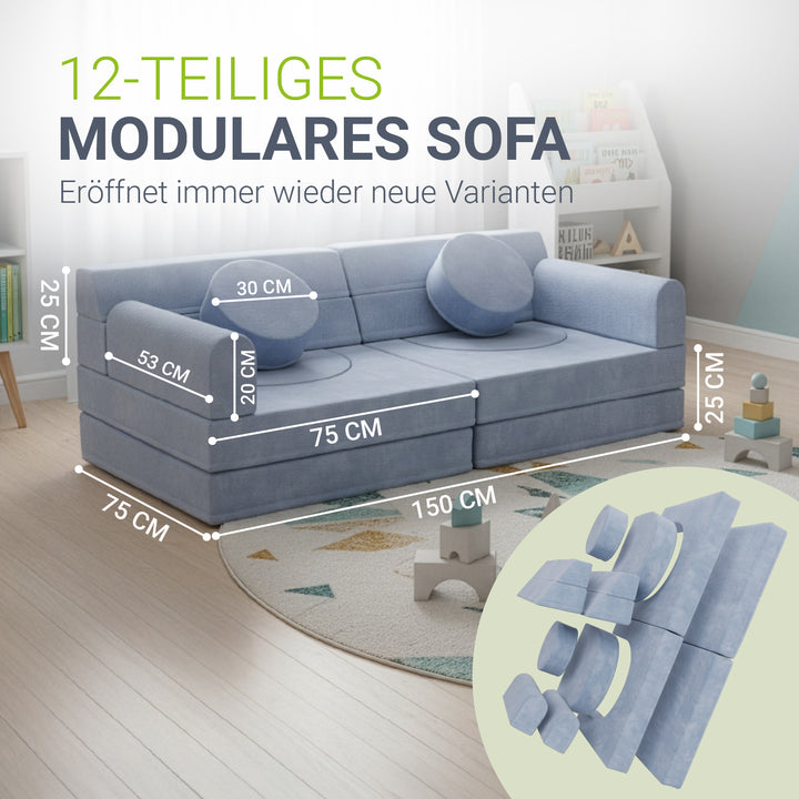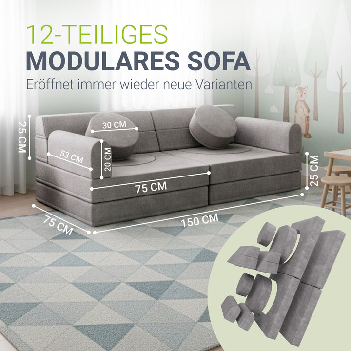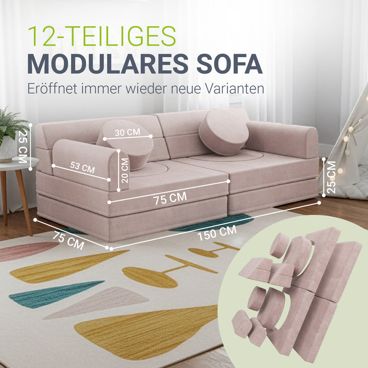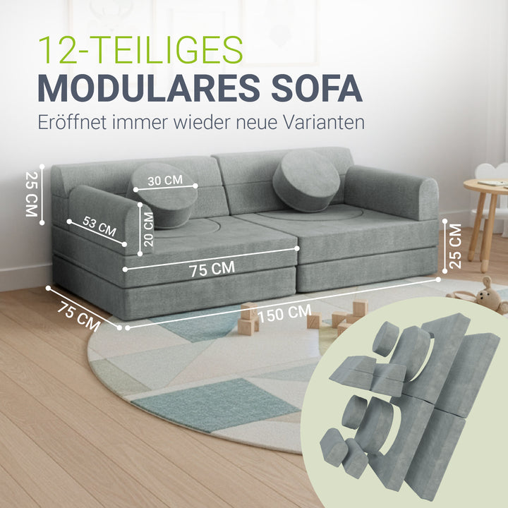 Weiche Polster und abgerundete Kanten schützen beim Spielen und machen die Couch zu einem sicheren Ort, an dem Eltern ihre Kinder beruhigt spielen lassen können.